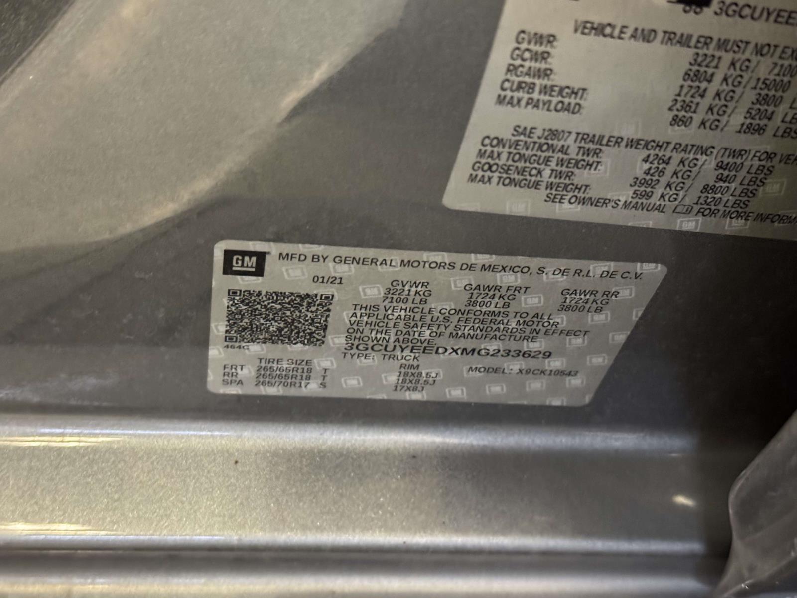 | VIN | 3GCUYEEDXMG233629 |
